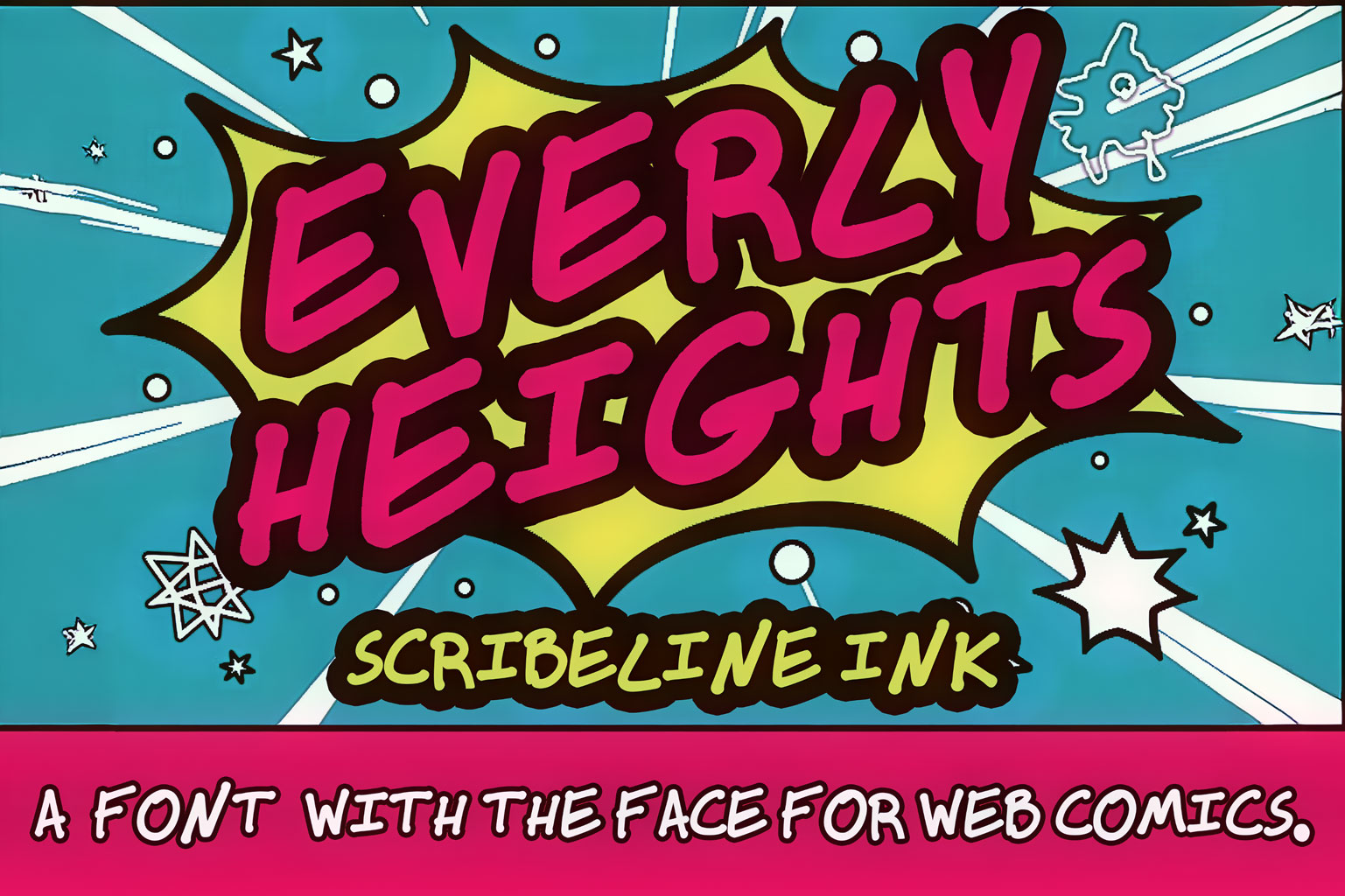 Meet Everly Heights Scribeline Ink, the font that brings hand-drawn personality to your comic book projects, book covers, and web site. With its playful, inky strokes, it’s designed for creators who want their work to feel fresh, fun, and full of life.